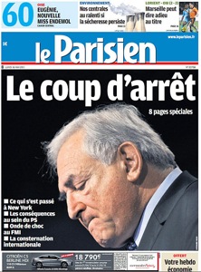 As head of the IMF, DSK is not allowed to talk French politics, or plus précisément, of his intentions for the French candidature. The not-so-secret proposed plan? Well, proposedly, he was supposed to quit. The IMF, that is. Proposedly. On the same day he proposed that he was in the running as proposed presidential candidate for the Parti socialiste. The deadline for announcing one’s candidacy? The primaries officially kick off on June 28th (the French press has already helpfully drawn the parallel between this date and the room number where the alleged crime allegedly took place). The drop-dead deadline? July 13th, the day before Bastille Day, the day when some of us will be shimmy-ing our stuff at the annual French Firemens’ Ball. Helluva tight deadline, if you ask me. For the French firemen and for the French politicians. Especially if you’re stuck in America and all bound up in the thick of star-spangled, American, red-white-and-blue legal tape. And not in that fun-kinky-fetishy-man-with-a-maid kind of way.
